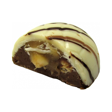 Caramel, marshmallow, hazelnut praline and crisped rice in white chocolate. Only available in March and April.