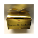 Custom Order $1,428.00Approx. 1,020.00 USD140 boxes ($9.95 each, plus delivery $35.00) - Personalized gold bow box with two chocolates without nuts, may have contact with nuts. Includes Delivery to Omni Hotel. For Engel & Völkers Ottawa. Quantité